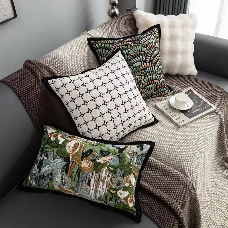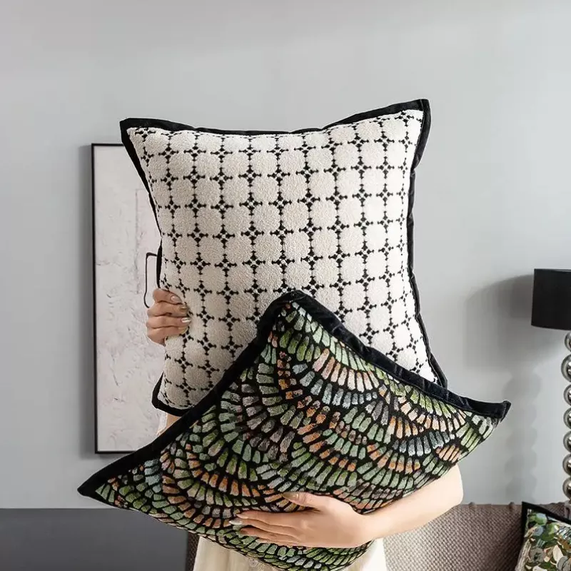 Available in two versatile sizes — 18″x18″ and 12″x20″ — these pillow covers are ideal for sofas, bedsides, or bay windows. Whether you’re curling up with a book, relaxing on the couch, or adding a decorative touch to your bed, they create a stylish and inviting atmosphere. The classic geometric jacquard pattern, woven with yarn-dyed craftsmanship, offers a refined look that feels both modern and timeless. Each pillow cover is double-sided, so you get a polished look from every angle.