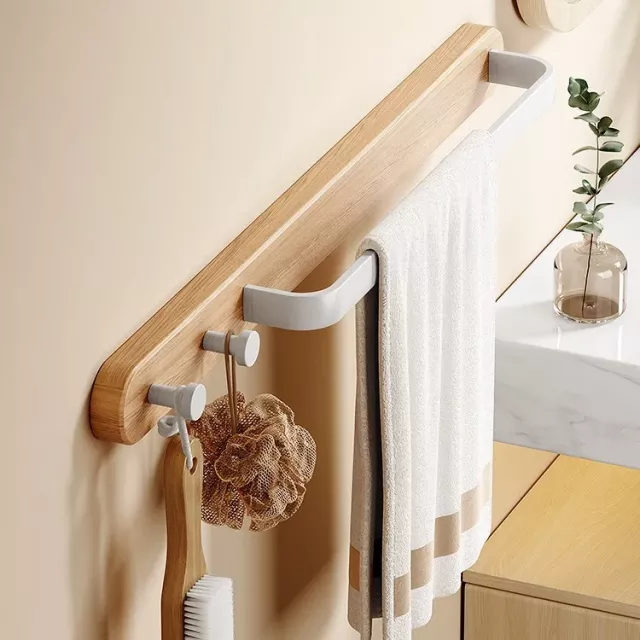 What makes this towel rack special is its fusion of durability and design. Unlike traditional racks, the combination of lightweight yet sturdy space aluminum and stylish wood finish gives you both resilience and aesthetic charm. The added hooks provide extra hanging space—perfect for towels, robes, kitchen cloths, or even accessories like brushes and loofahs.