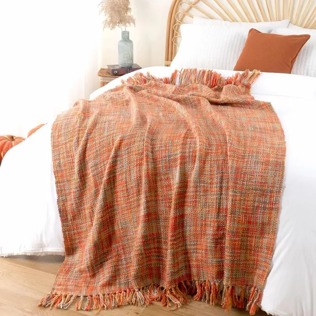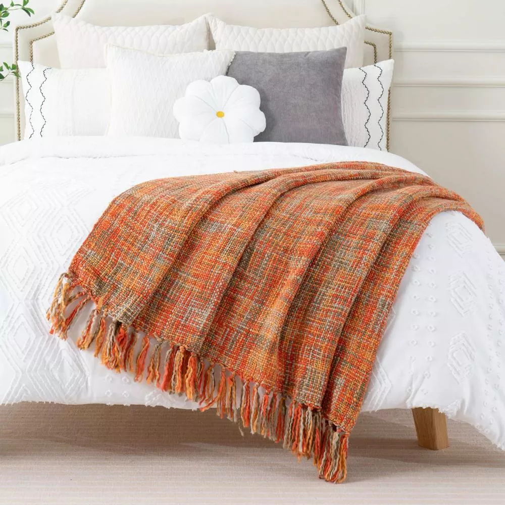 What sets this throw apart is its unique blend of visual appeal and everyday functionality. The bold orange hue instantly brightens any space, while the boho-inspired knit and tassel detailing create a trendy, handcrafted look. It’s more than just a blanket—it’s a design statement that wraps you in comfort.