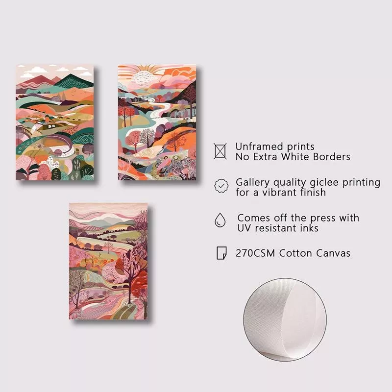 Let your walls do the talking with this stunning set of Pink Abstract Landscape Canvas Prints. Whether you’re looking to refresh your home or add a calming accent to a busy space, these artworks deliver subtle charm and elegance in every glance. Refresh your decor with beauty that never fades – add to cart now and create the serene space you deserve.