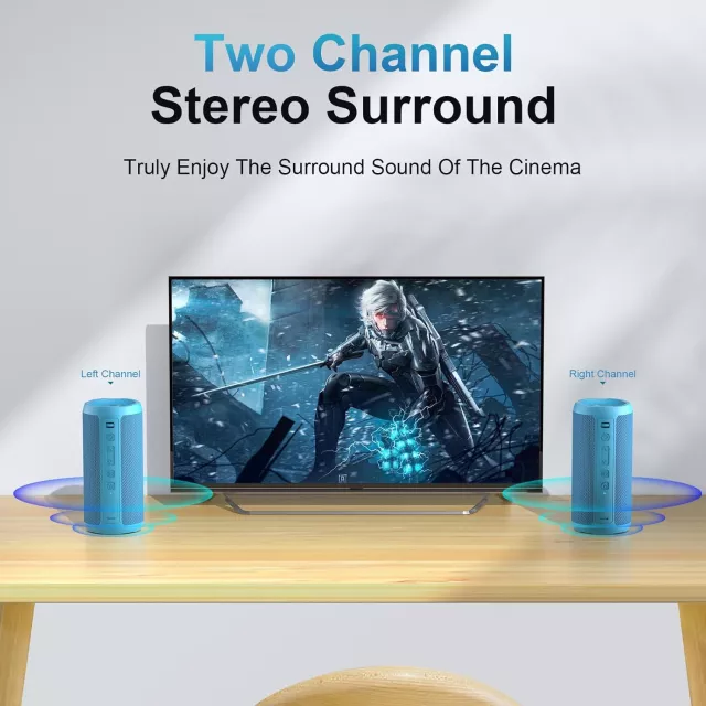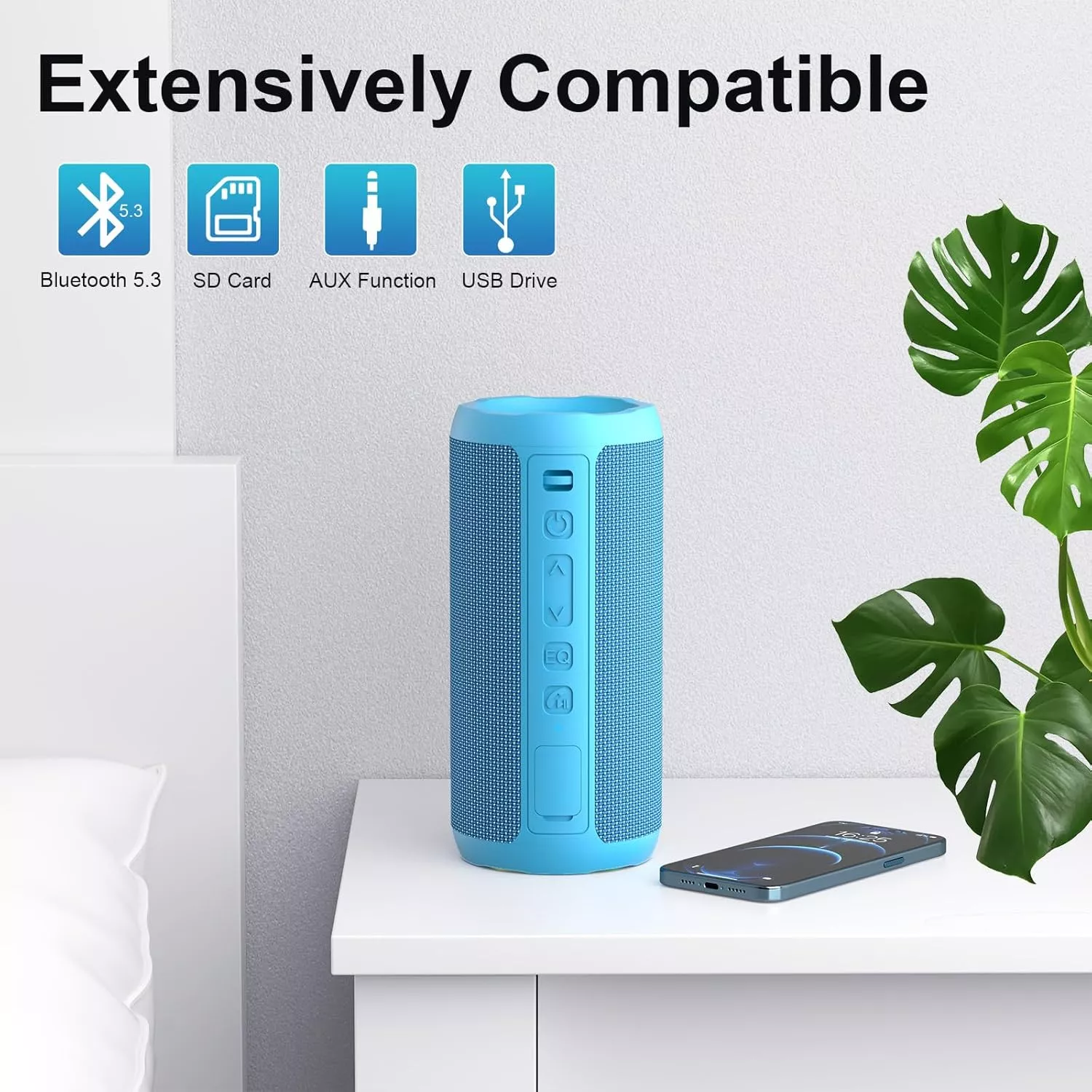This speaker isn’t just about sound—it’s about experience. Vibrant 7-color RGB lights pulse and glow with every beat, creating a party vibe whether you’re camping under the stars or lighting up your backyard BBQ. Thanks to Bluetooth 5.3, you get a fast, stable connection up to 66 feet, with crystal-clear audio and minimal lag—perfect for music, games, or movies. Want louder sound? Pair two speakers together for true wireless stereo that surrounds you in powerful, clear audio.