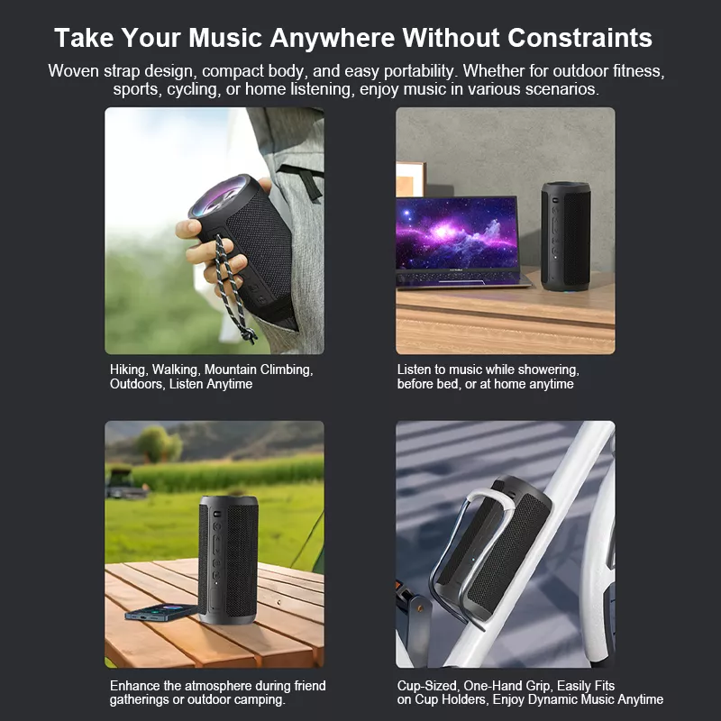 Experience music like never before with this 24W portable Bluetooth speaker built for life on the go. Whether you’re hiking in the hills, camping under the stars, or enjoying a backyard BBQ, this rugged wireless speaker delivers booming sound, punchy bass, and vivid RGB lights to match the mood. Designed for outdoor adventures and daily use alike, it brings premium audio and ultimate convenience in a compact, durable design.