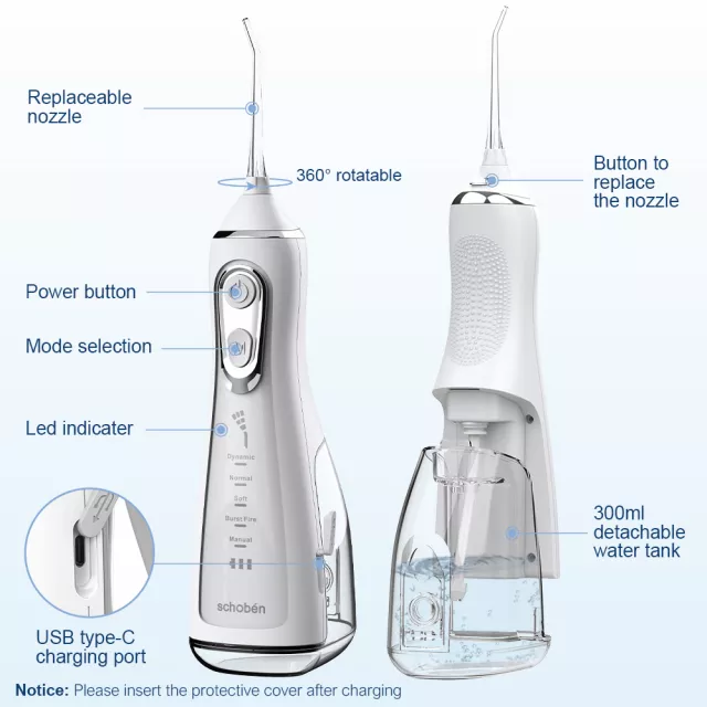Compact yet powerful! This portable flosser cleans brilliantly with its 4 modes while being gentle on gums. USB charging saves me from battery hassles too.