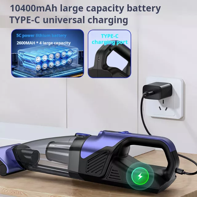 This smart, cordless vacuum is built for quick cleanups and deep detailing alike. With a powerful 120W motor and suction up to 10000PA, it tackles everything from fine dust in the dashboard vents to stubborn pet hair in the back seat. The rechargeable battery and USB charging cable mean you can charge it right from your car or any USB port—no wall outlet needed.