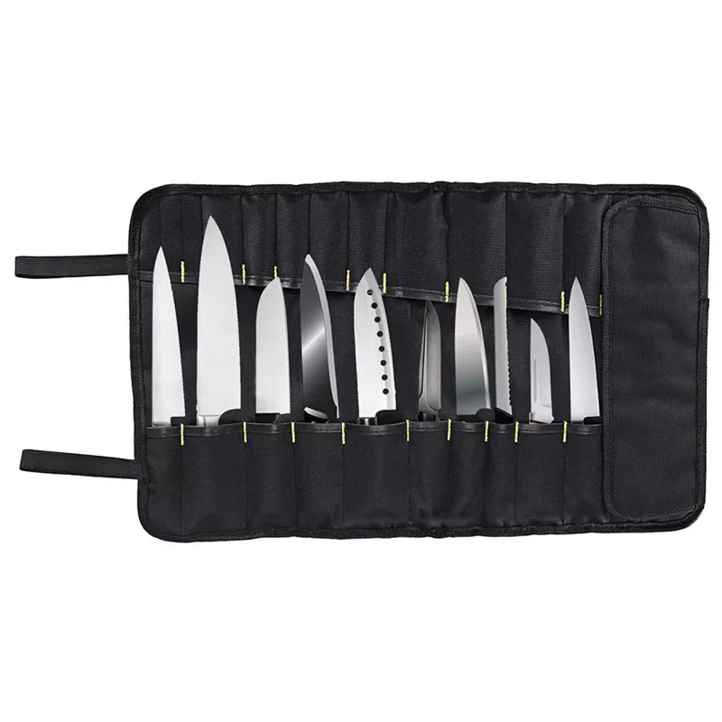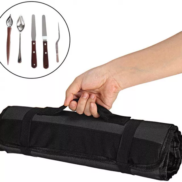 Its intelligent design fits up to 22 knives or culinary tools, offering a snug and secure slot for each item. From paring knives to chef’s blades, everything stays neatly in place. The reinforced stitching and tough Oxford fabric make it a reliable choice for both indoor and outdoor culinary adventures. Whether you’re heading to a cooking class, a catering gig, or simply organizing your kitchen space, this roll-up knife bag is built to impress.