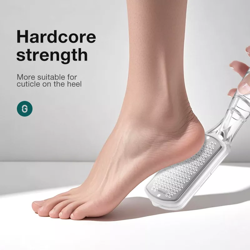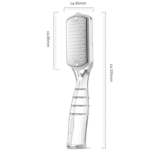 With this stainless steel foot file, rough heels and hardened skin are a thing of the past. The combination of its effective rasping surface and practical design ensures you get professional-quality care in the comfort of your home. Safe, simple, and effective—this is a must-have for your foot care routine.