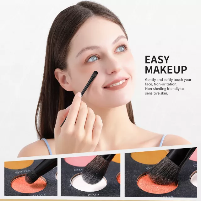 Each brush is designed with high-quality synthetic fibers that are ultra-soft on your skin yet firm enough for precise application. Durable handles made of sleek wood or synthetic resin ensure a comfortable grip, while recyclable aluminum ferrules add strength and style. These brushes work beautifully with powders, creams, and liquids, making them a must-have for daily use or professional makeup sessions.