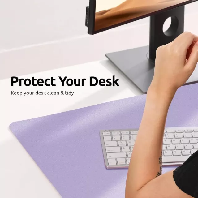 At 31.5 x 15.7 inches, this spacious desk mat easily fits your laptop, keyboard, and mouse, offering a smooth surface for all your daily tasks. Its refined leather texture adds a sophisticated touch to your desk while protecting it from scratches, spills, and stains. The non-slip suede backing ensures it stays securely in place, even during your busiest workdays.