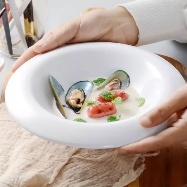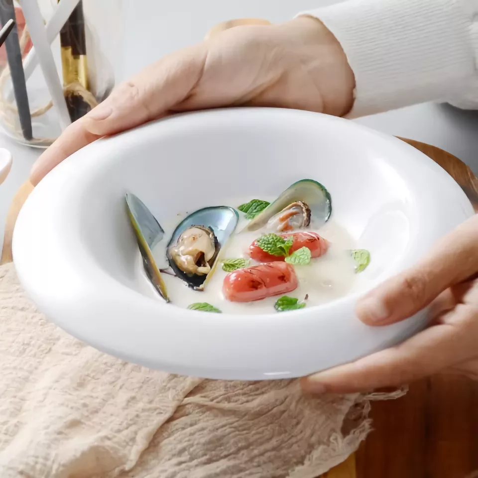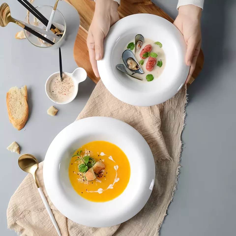 From casual breakfasts to formal dinners, this dish adapts effortlessly. Use it for pasta, steak, dessert, snacks, or even as a stylish serving tray. Its generous flat surface and low-rim design add a minimalist touch while keeping food neatly in place.