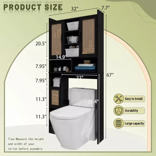 Note: Measures 32″W x 7.7″D x 68″H. Fits most standard toilets with 35.4″ clearance. Includes all necessary hardware for easy assembly.