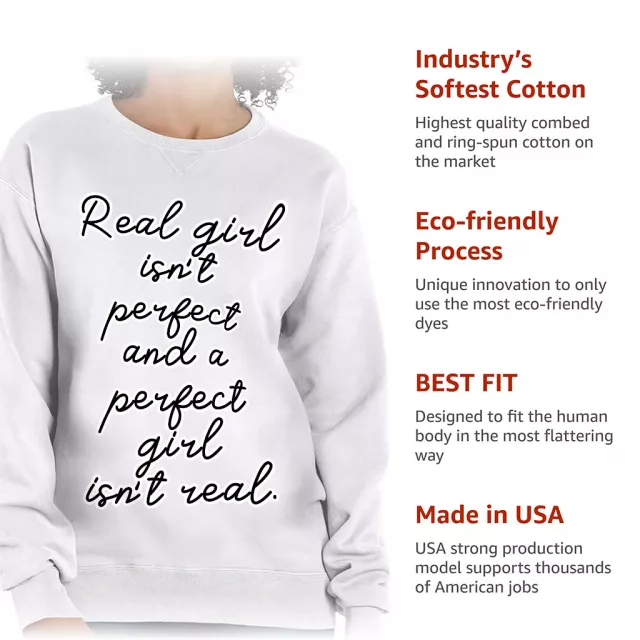 Made of soft, skin-friendly high-quality cotton and polyester material, breathable and cozy to wear without a scratch. Real Girl Isn’t Perfect Crewneck Sweatshirt is great to wear on cold mornings, spring, fall, or winter days, adding more warmth without bulk.