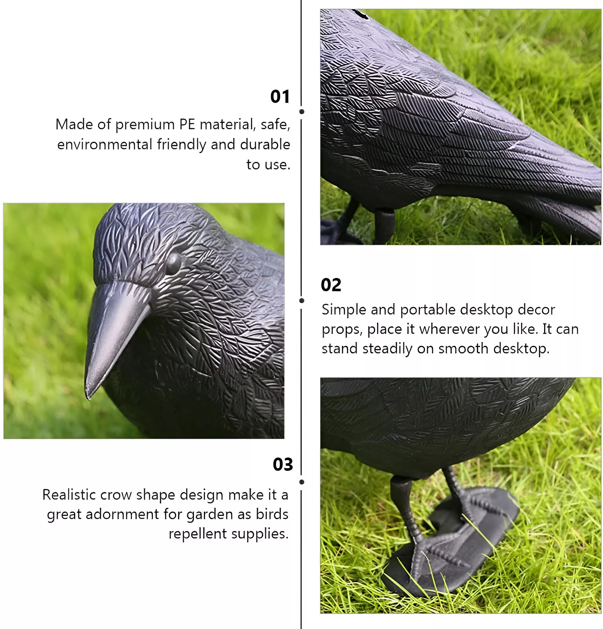 Say goodbye to pigeon droppings and bird-related messes with this lifelike Black Crow Simulation Decoy. Designed to mimic the appearance of a real raven, this artificial crow is the perfect, humane solution for keeping pesky birds like pigeons, blackbirds, and starlings at bay. Whether it’s your garden, balcony, rooftop, or even your parked car, this bird deterrent helps protect your space without using chemicals or harmful traps.