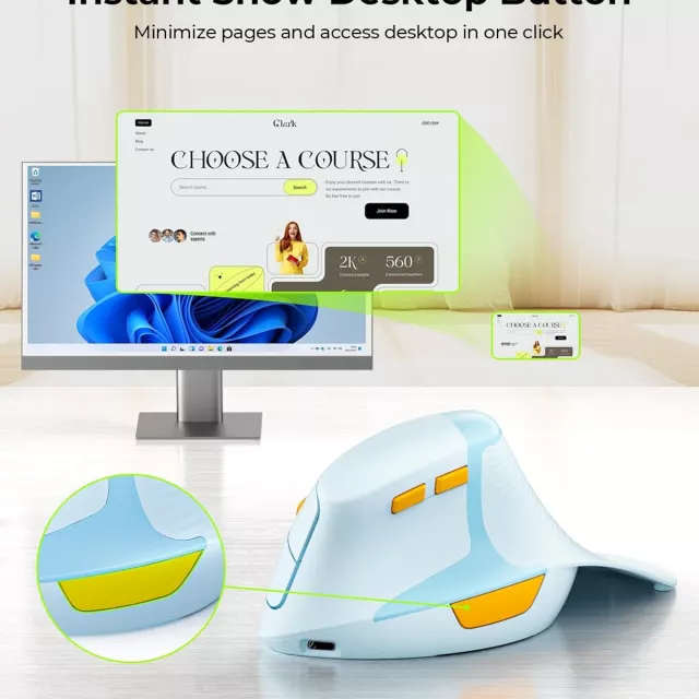 Designed for professionals, students, and anyone seeking better ergonomics, this rechargeable vertical wireless mouse delivers a healthier, quieter, and more efficient way to work. Say goodbye to wrist fatigue and hello to seamless control. Ready to experience the difference? Click to add this ergonomic essential to your workspace today.