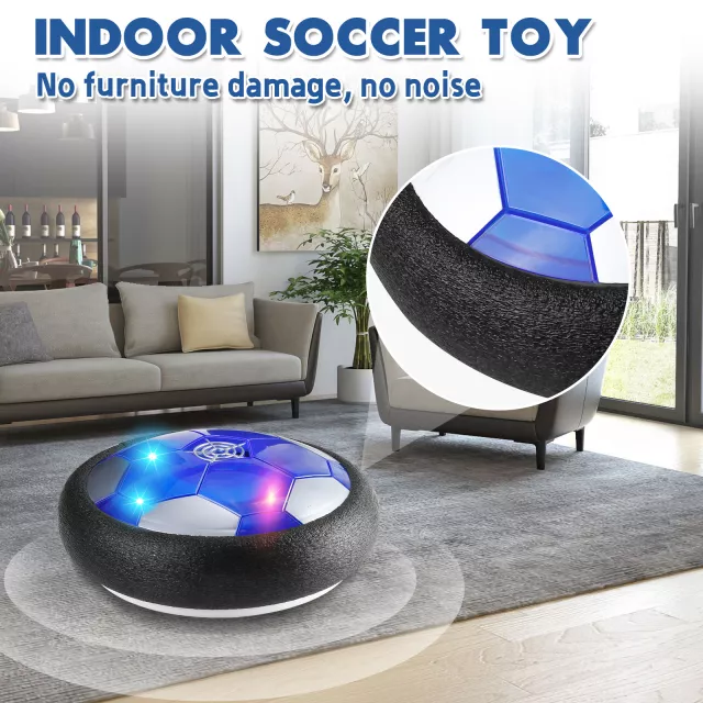 Watch your child laugh, move, and engage as this hover soccer ball lights up and skims effortlessly over hardwood, tile, and even low-pile carpet. The secret? A powerful built-in fan creates a hovering effect, while a soft foam bumper surrounds the edges to protect furniture, walls, and tiny toes. Measuring approximately 7 inches in diameter and under an inch thick, it’s perfectly sized for little feet to control and kick with ease.