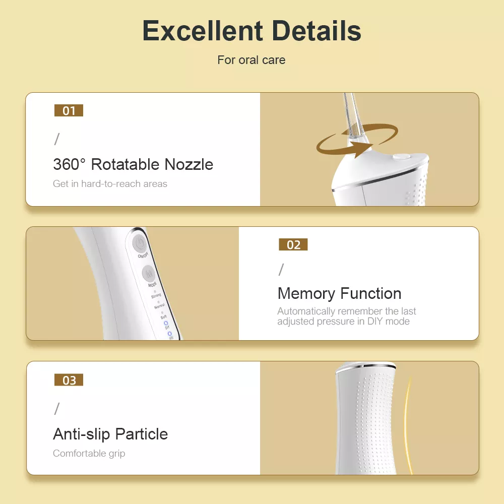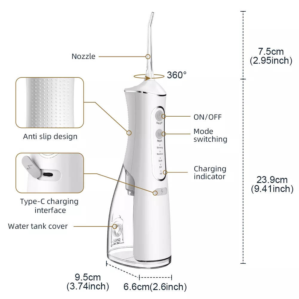 Don’t settle for ordinary when you can experience extraordinary oral care. Treat yourself to a cleaner, healthier mouth with our Oral Irrigator Water Flosser. With easy-to-use features, effective performance, and convenient portability, this flosser will quickly become an essential part of your daily routine. Upgrade your oral hygiene today!