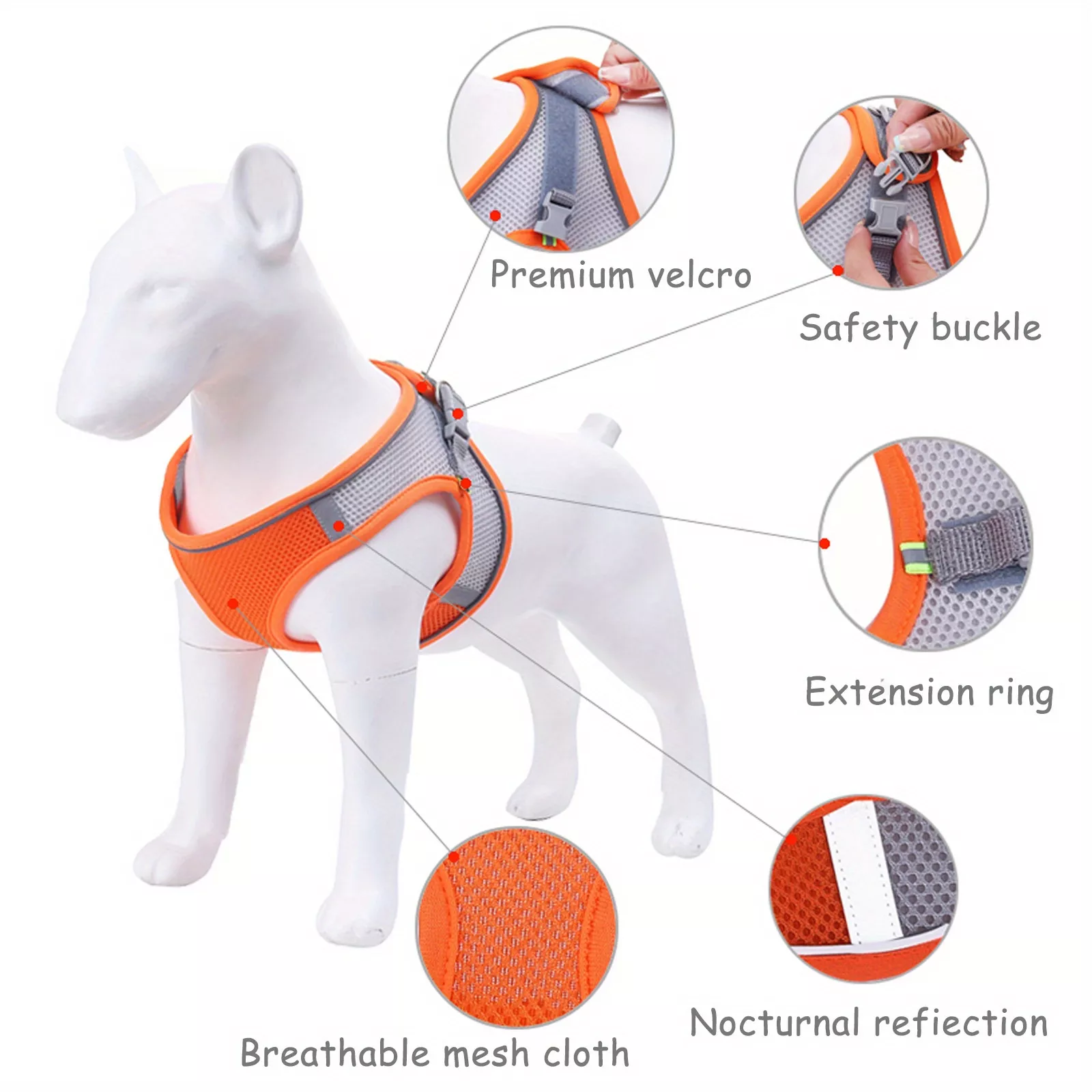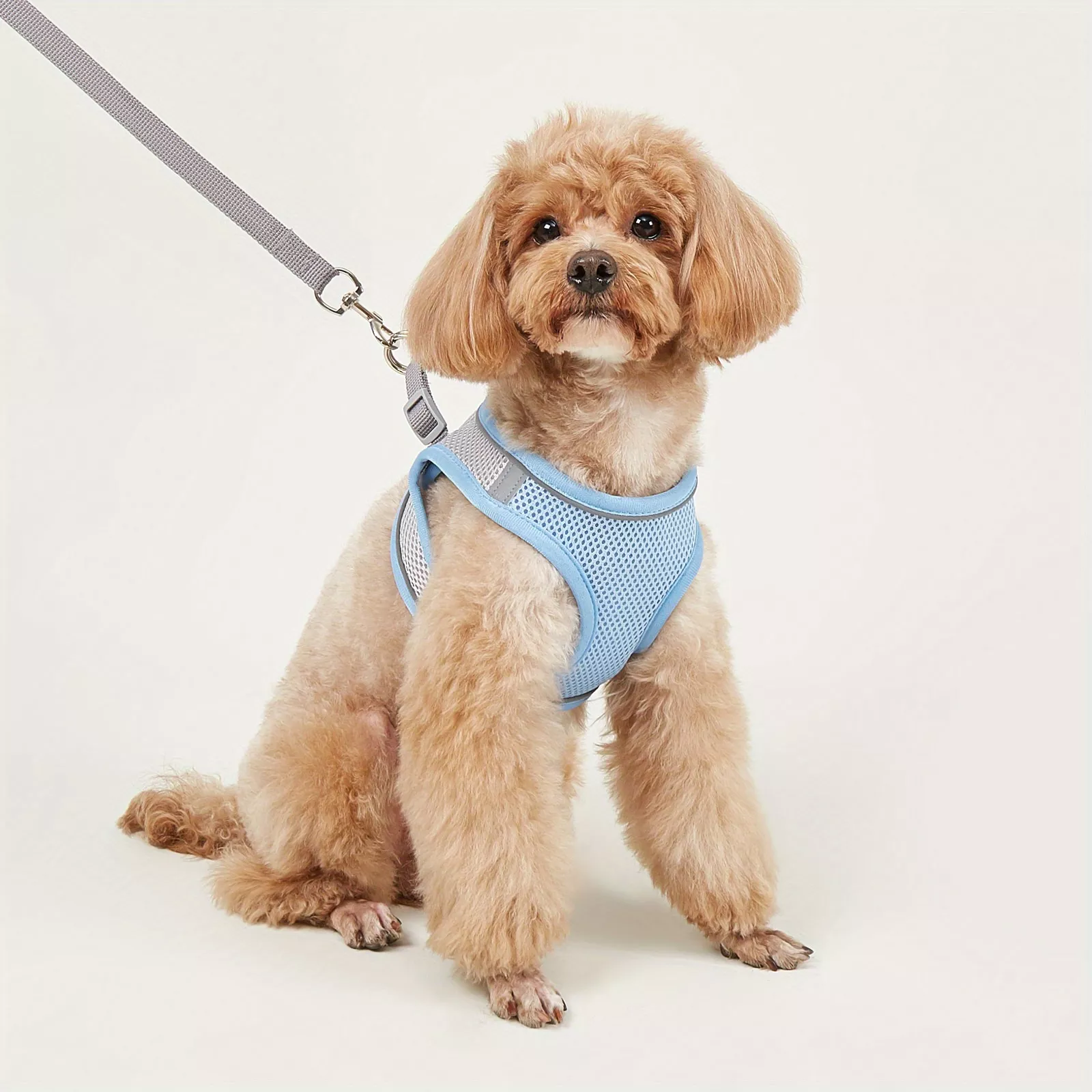 This harness features a solid color design with reflective detailing that enhances visibility in low-light conditions, adding an extra layer of safety during early morning or nighttime walks. The soft mesh material ensures breathability and prevents chafing, making it ideal for puppies or dogs with sensitive skin. Its simple step-in design makes it quick to put on and take off, so you can spend less time prepping and more time enjoying the outdoors with your dog.