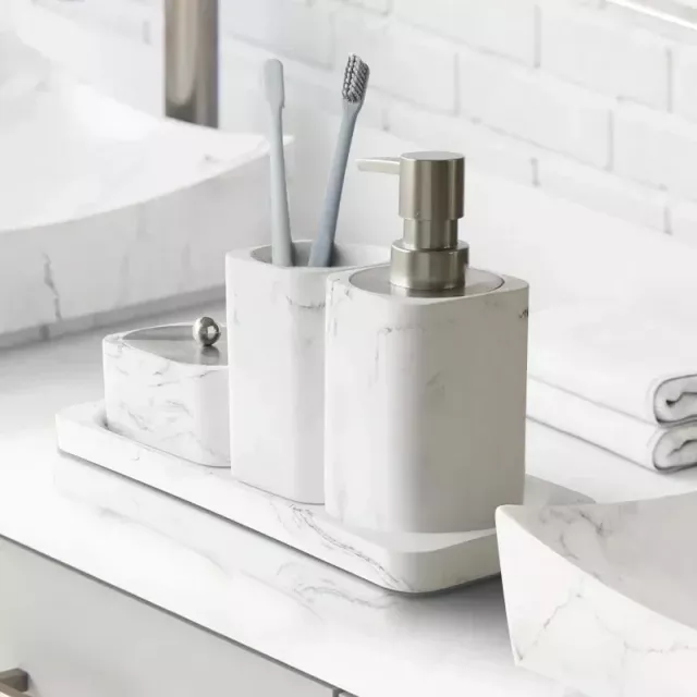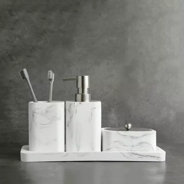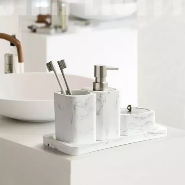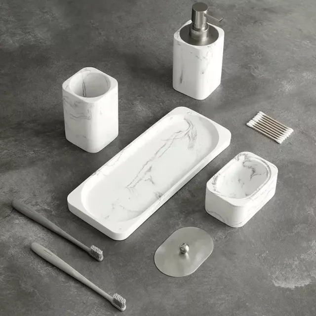 Resin Marble Bathroom Accessory Set with Dispenser, Tray & Cup