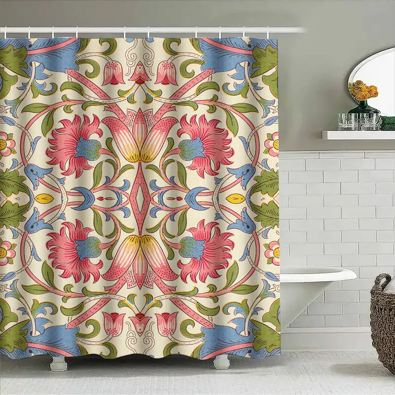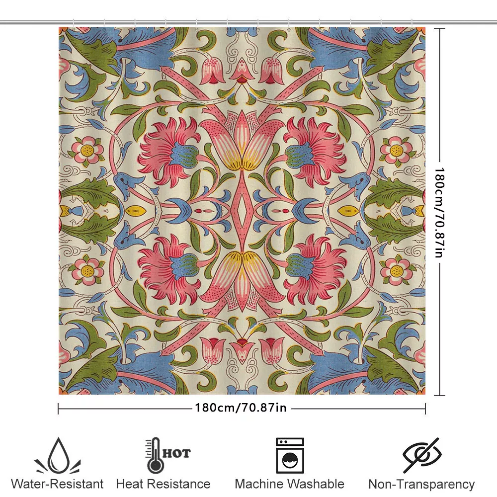 Crafted from 100% high-quality polyester, this curtain is not only soft and lightweight but also waterproof, mildew-resistant, and antibacterial. Whether you’re enjoying a peaceful morning shower or winding down after a long day, this curtain creates a serene backdrop that complements any modern or retro-styled bathroom.