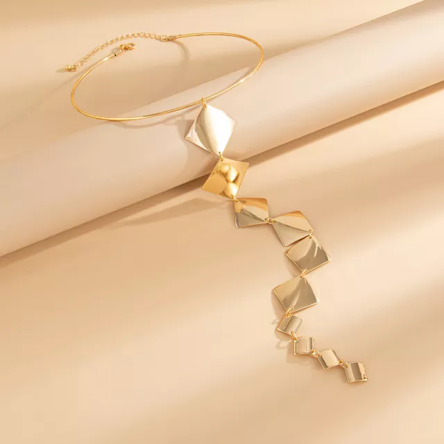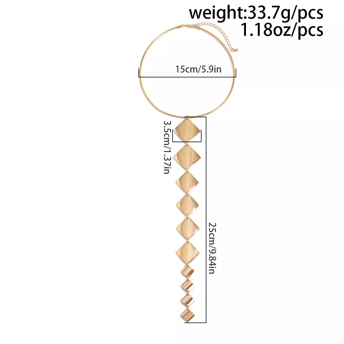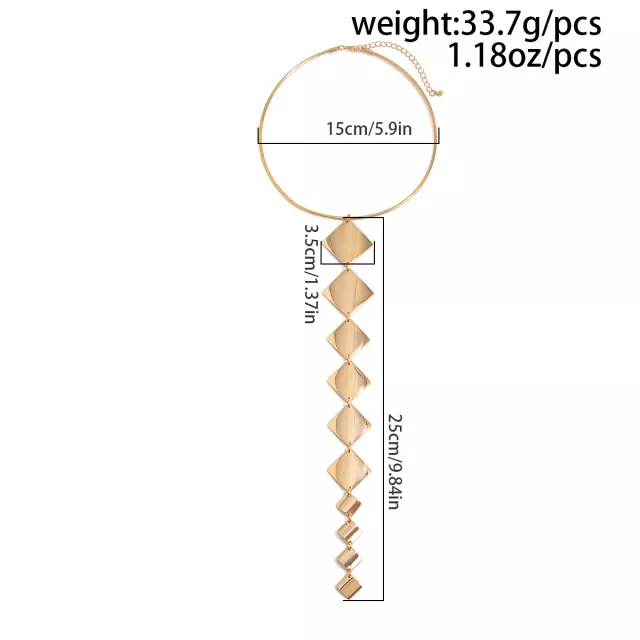 From the moment I saw this necklace, its retro geometric design caught my attention. The square pendant with a tassel chain exudes a vintage yet modern appeal that is truly captivating. It's not just about aesthetics; I was pleasantly surprised by its durable iron alloy construction which ensures long-lasting wear. This piece of jewelry has been my go-to accessory for parties and dinners, but it also adds an extra chic to everyday outfits. Despite being so stylish and sturdy, it’s incredibly lightweight which allows me to wear it comfortably all day long. Plus, the fact that it comes in both gold and silver means I can match any outfit or mood! A versatile unisex option indeed.
