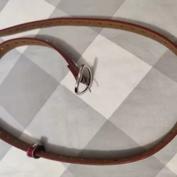The moment I saw this retro style belt with its adorable heart buckle, I knew I had to have it! It fits perfectly and also elevates any outfit with its vibrant pink hue Really pleased with my purchase.