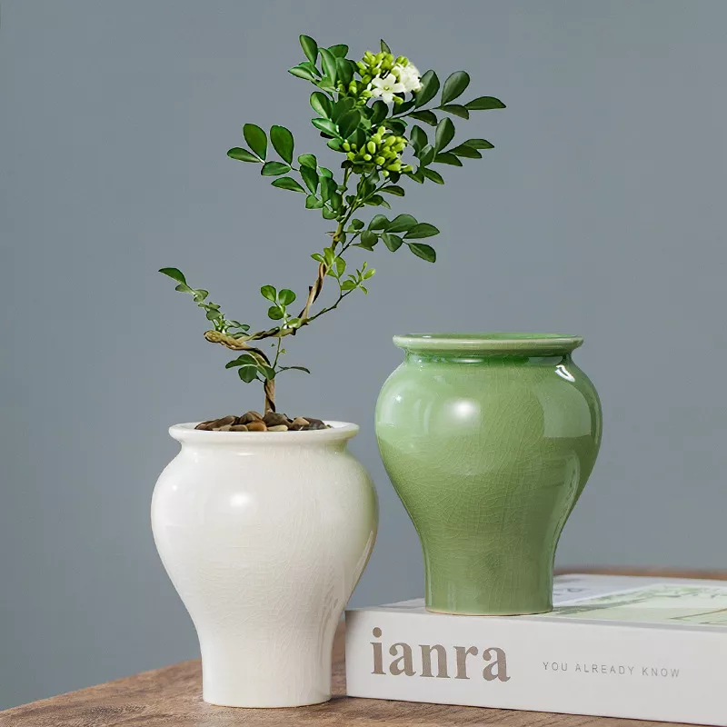 Infuse your space with classic beauty and artisanal charm using the Retro Ice Crack Ceramic Planter. With its crackled glazed finish and elegant curves, this ceramic flower pot brings a vintage yet refined touch to your home or office. Available in soft shades of green and white, it complements both modern and traditional interiors with ease.