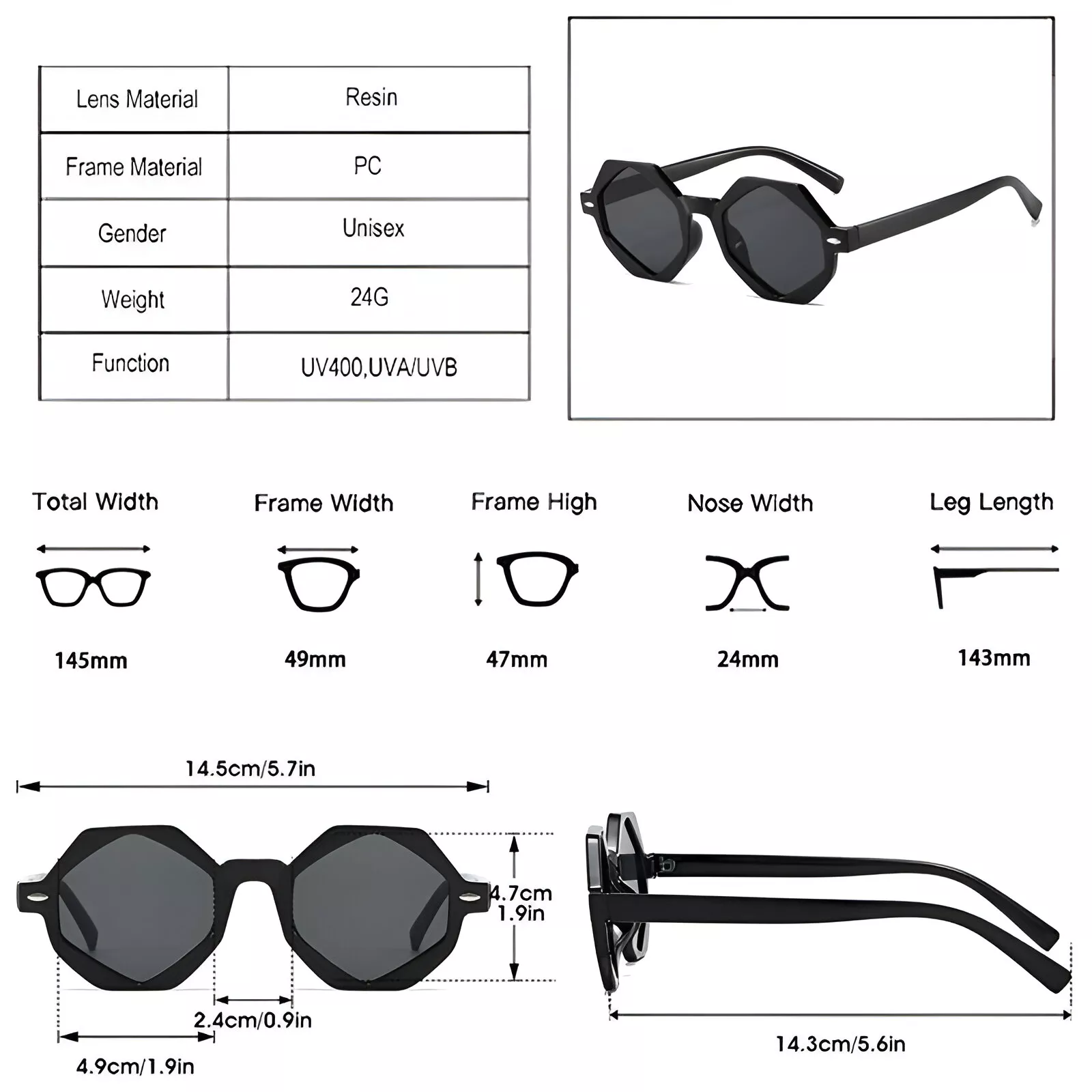 Crafted with a durable polycarbonate frame and lightweight resin lenses, these sunglasses are as sturdy as they are fashionable. The unique polygonal square design, accented with trendy rivets, adds a touch of retro cool to any outfit. Gradient lenses offer a smooth color transition for visual comfort, while the unisex style means anyone can rock them—no matter your vibe.