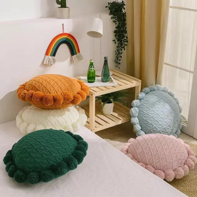 Transform your living space with this delightful round knitted sunflower cushion, designed to add a splash of warmth and whimsy to any room. Carefully handcrafted with high-quality woolen thread and adorned with soft, playful pompoms, this plush throw pillow is a standout accessory for any sofa, bed, or cozy reading nook. The included insert is filled with fluffy PP cotton, providing cloud-like comfort whether you’re lounging, decorating, or gifting during the holidays.