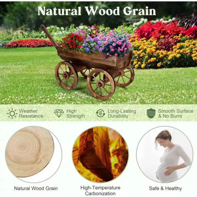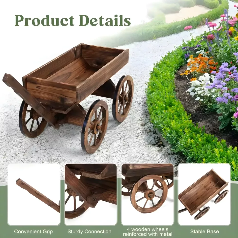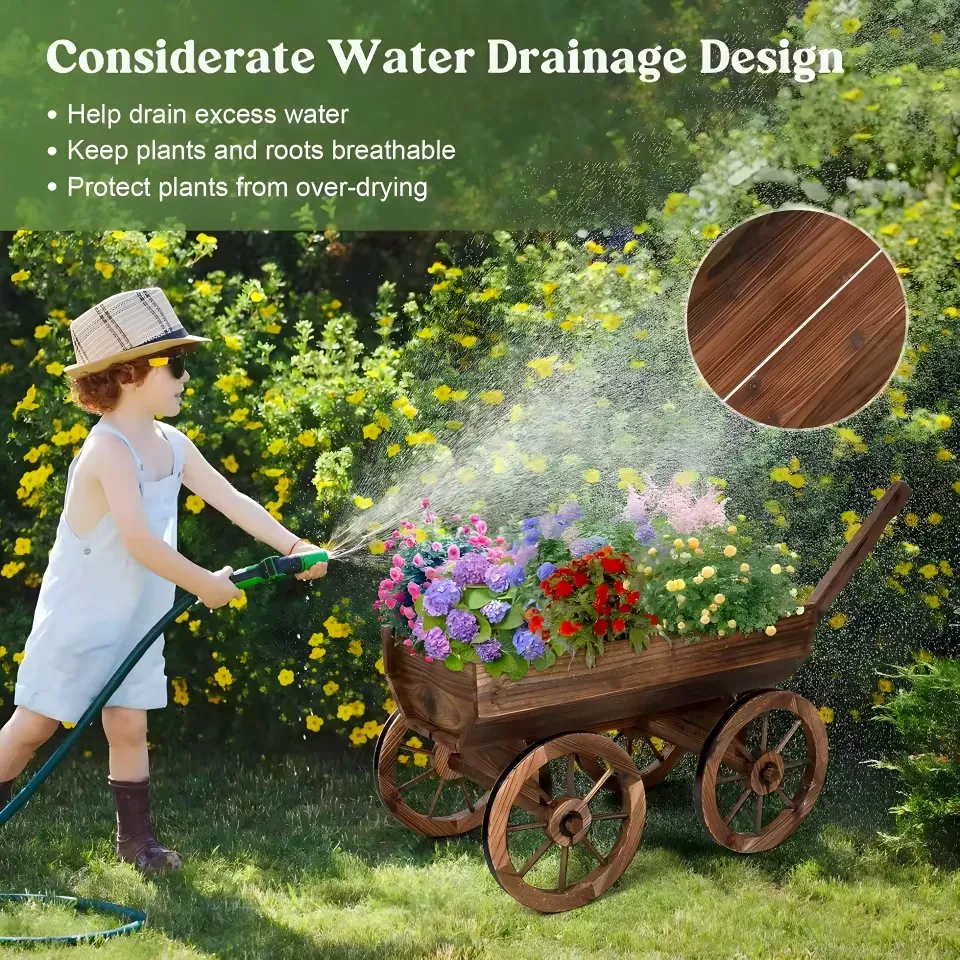 Ideal for spring blooms, summer herbs, or autumn arrangements, this wooden wagon planter is best used as a decorative and functional centerpiece for balconies, patios, porches, and backyards. It protects the roots of your plants while giving your outdoor space a wholesome, handcrafted feel. Whether you’re hosting a garden party or simply enjoying your morning coffee outdoors, this cart adds warmth and life to any scene.