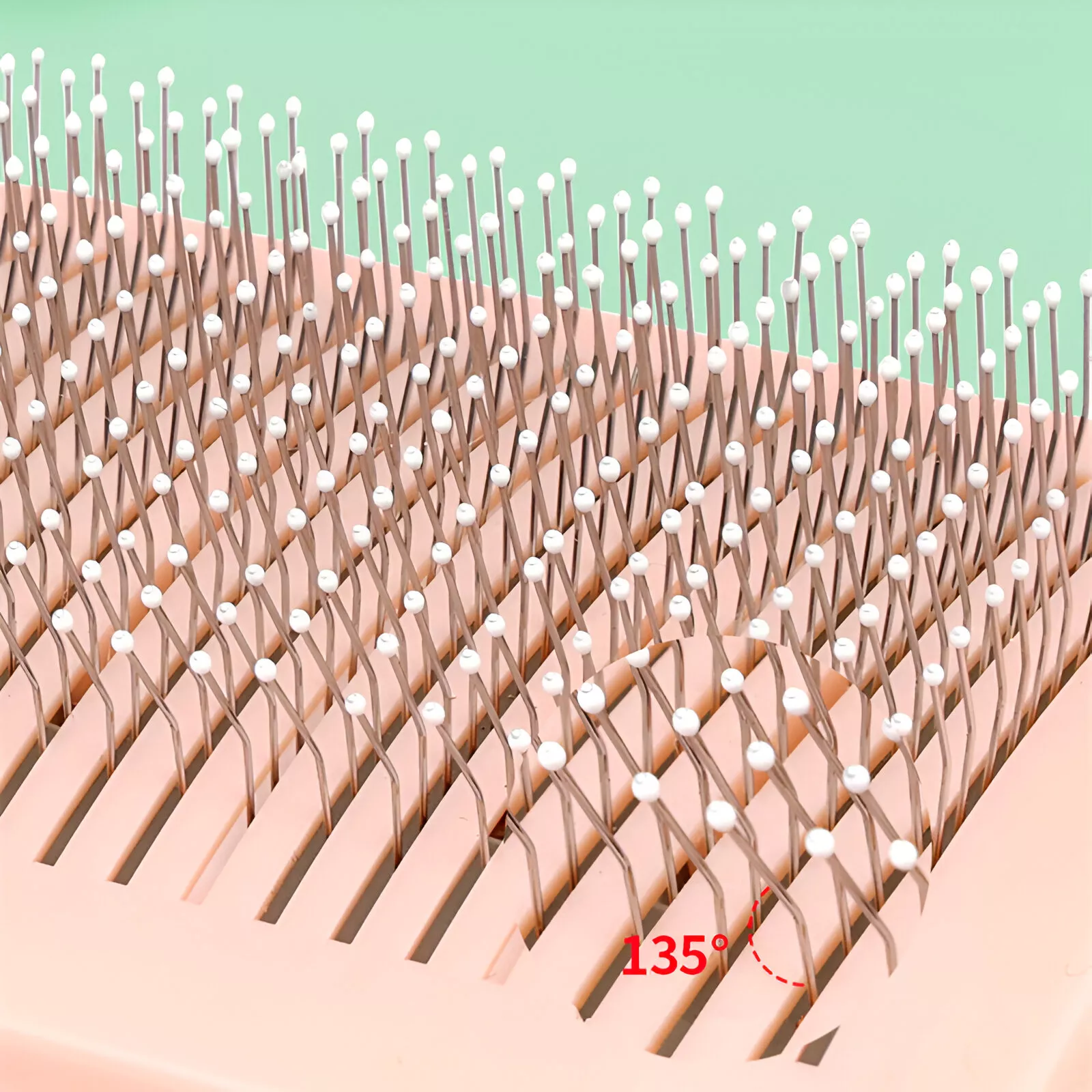 Crafted with high-quality stainless steel bristles, this brush glides effortlessly through your pet’s fur without scratching their skin. The automatic hair remover function makes cleaning simple—just press the button, and the hair comes off in one easy swipe. No more messy hands or endless cleaning!