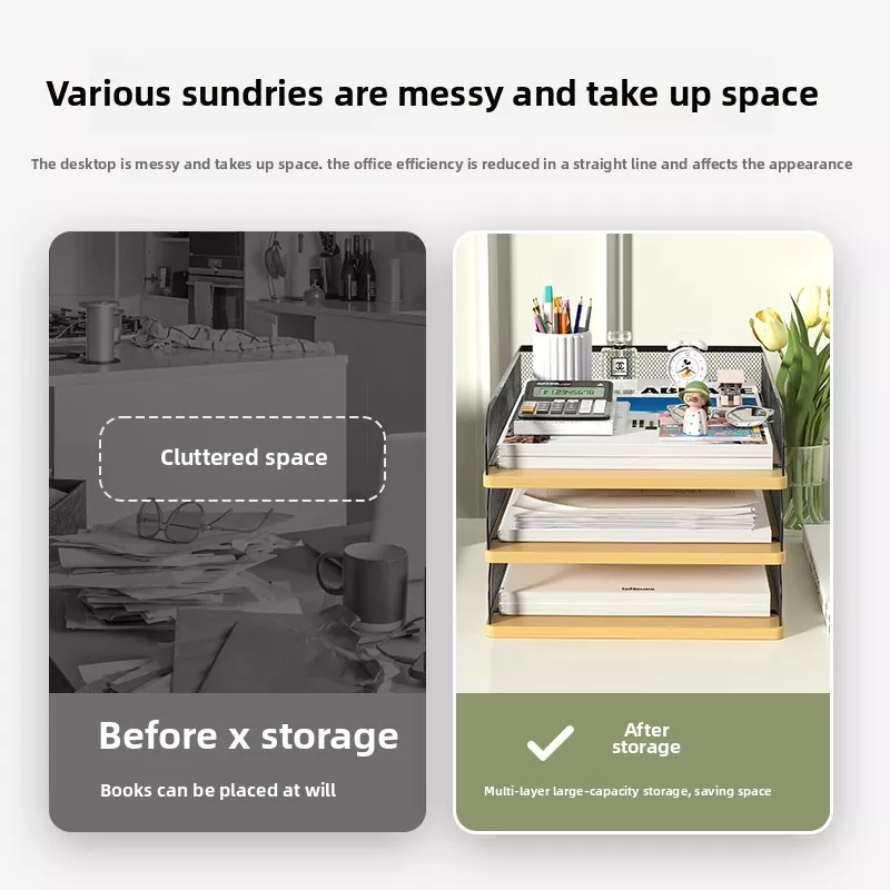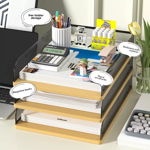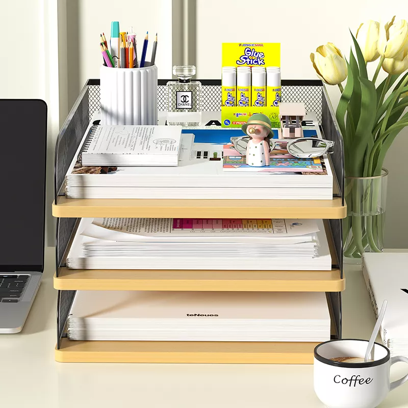 These trays have been a fantastic addition to my home office. The durable metal frame provides stability, while the natural wooden base adds a rustic charm that I absolutely love. Each tray comfortably holds all of my letter-size papers and files, keeping everything within reach and eliminating clutter from my workspace. What's more is that they're safe to use in any environment as they contain no harmful chemicals! Whether stacked together or used separately, these trays offer flexible organization options that suit me perfectly. They've truly enhanced the functionality of my workspace whilst adding an element of style with their classic yet modern look.