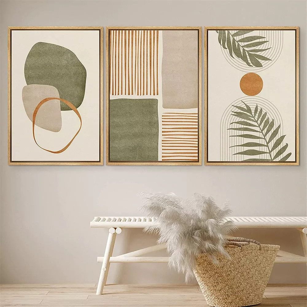 Bring a refreshing modern touch to your space with this Set of 3 Tropical Leaf Boho Abstract Canvas Prints. Featuring soft shapes, earthy tones, and minimalist plant motifs, these posters blend tropical greenery with artistic abstraction. The clean design and neutral palette make this trio an easy fit for a wide variety of interiors—from modern boho and coastal chic to minimalist Scandinavian themes.