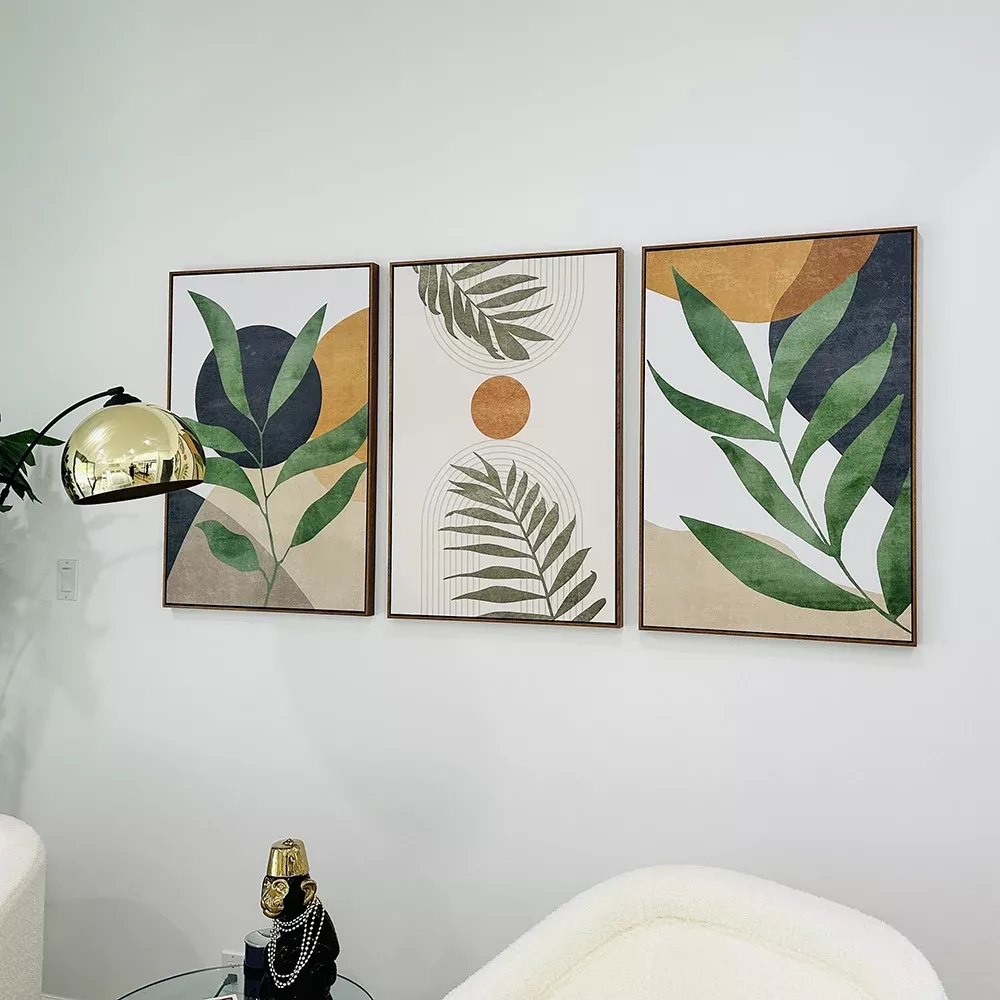 Set of 3 Tropical Leaf Boho Abstract Canvas Prints