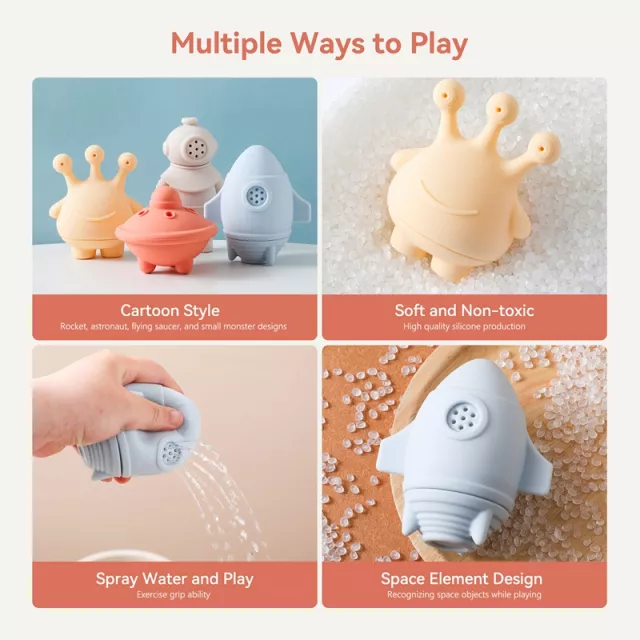 It’s not just a toy – it’s a sensory adventure. With charming animal designs and astronaut-inspired fun, these bath toys turn ordinary water play into a magical, stimulating journey. The premium silicone ensures durability and long-lasting play, while being ultra-gentle on delicate baby skin. No batteries, no fuss – just pure, playful fun with every squeeze and splash.