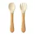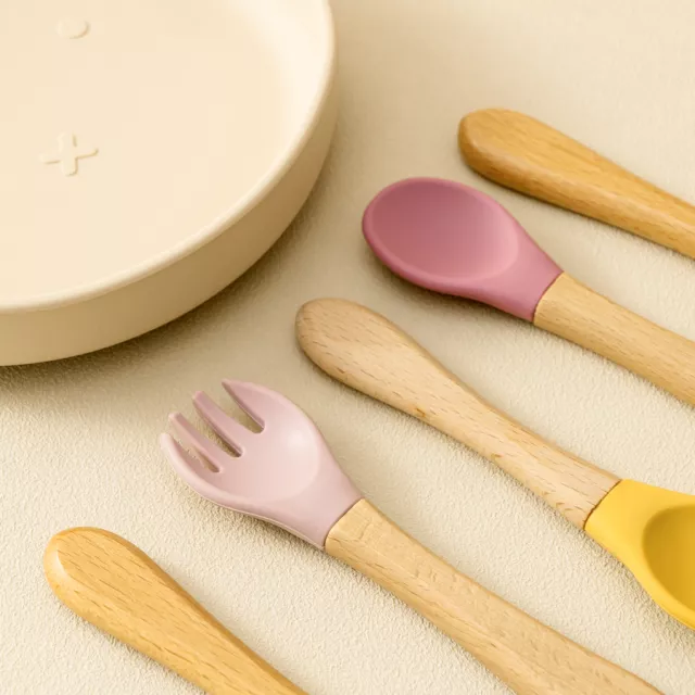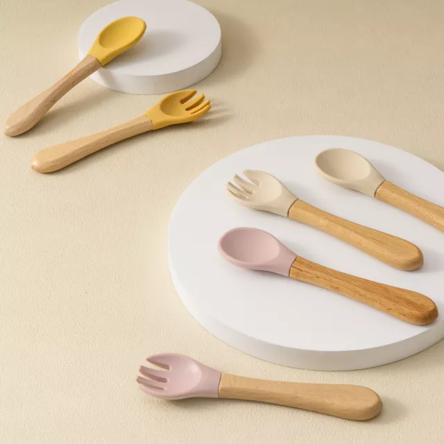 Silicone Baby Spoon & Fork Set – Safe Training Cutlery with Wooden Handles
