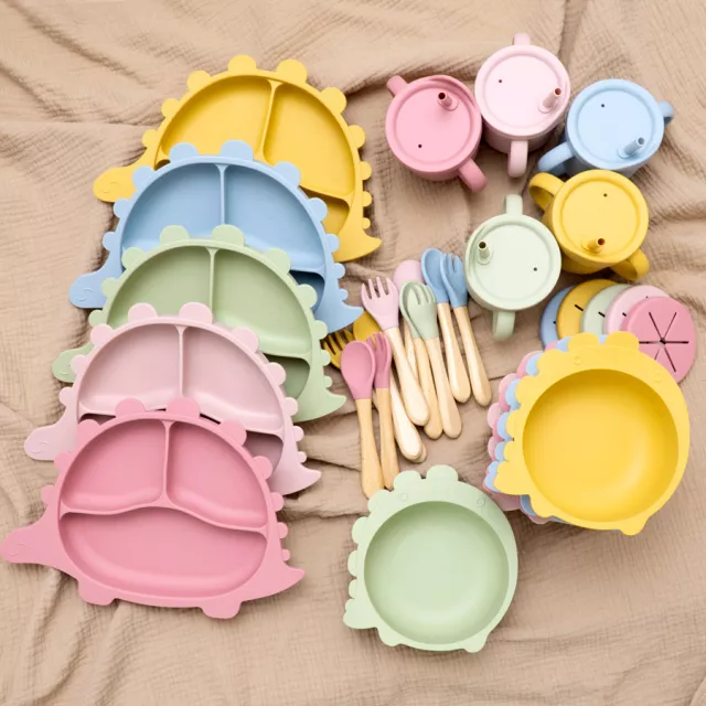 Perfect for introducing solids or transitioning into toddler meals, this set helps babies learn essential eating skills while reducing spills and food waste. The strong suction bases keep dishes in place, while the cute cartoon shapes keep kids engaged during every bite. Made from BPA-free silicone, each piece is soft, durable, and completely safe for babies from 6 months and up. Whether you’re at home or out and about, this lightweight set is a reliable choice for stress-free mealtimes.