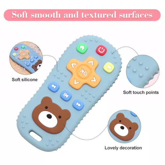 Make teething time easier—and a lot more fun—with this adorable remote control-shaped bear teether! Thoughtfully designed for little hands and sensitive gums, this soft silicone baby teething toy is a must-have for parents looking to comfort their little ones while encouraging healthy oral habits. The playful shape, gentle texture, and safe material make it an irresistible companion for babies ages 0 to 3 years.