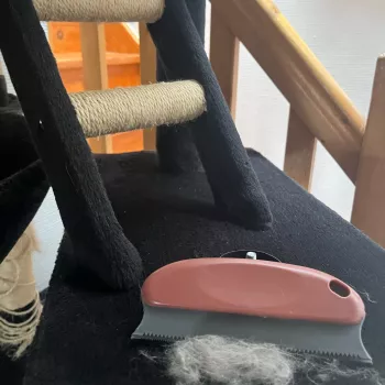 This little tool has been a lifesaver for our fur-filled home. Not only does it groom our kitty beautifully but also doubles as an effective hair remover from clothes and furniture. Love how versatile and efficient it is!