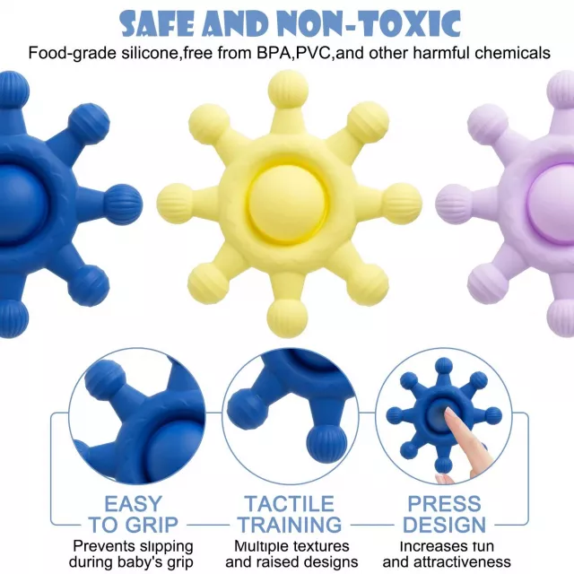 Crafted from high-quality, food-grade silicone, this teether is completely free from BPA, latex, PVC, phthalates, and nitrosamines. Its smooth yet textured surface is gentle on tender gums, offering comfort during every stage of teething. Whether at home, in the car, or on a stroll, this lightweight toy is perfect for on-the-go soothing. Ideal for infants aged 0 months and up, it also supports sensory development for toddlers and even offers comfort during maternity bonding moments.