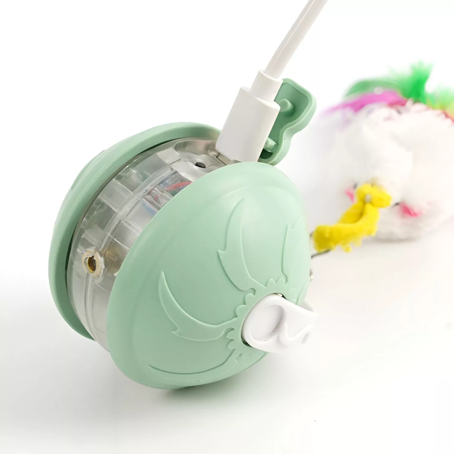 Crafted from durable ABS and soft TPR materials, the toy is bite-resistant, scratch-proof, and gentle on your floors. The quiet operation (less than 60 decibels) ensures your pet stays engaged without disturbing your home. Featuring two play modes and detachable feather or mouse tails, it adds a playful twist every time your cat interacts with it. The built-in infrared laser boosts excitement, giving your cat more reasons to chase and play. Plus, the smart design includes an easy Type-C charging system with a long-lasting battery for extended use.