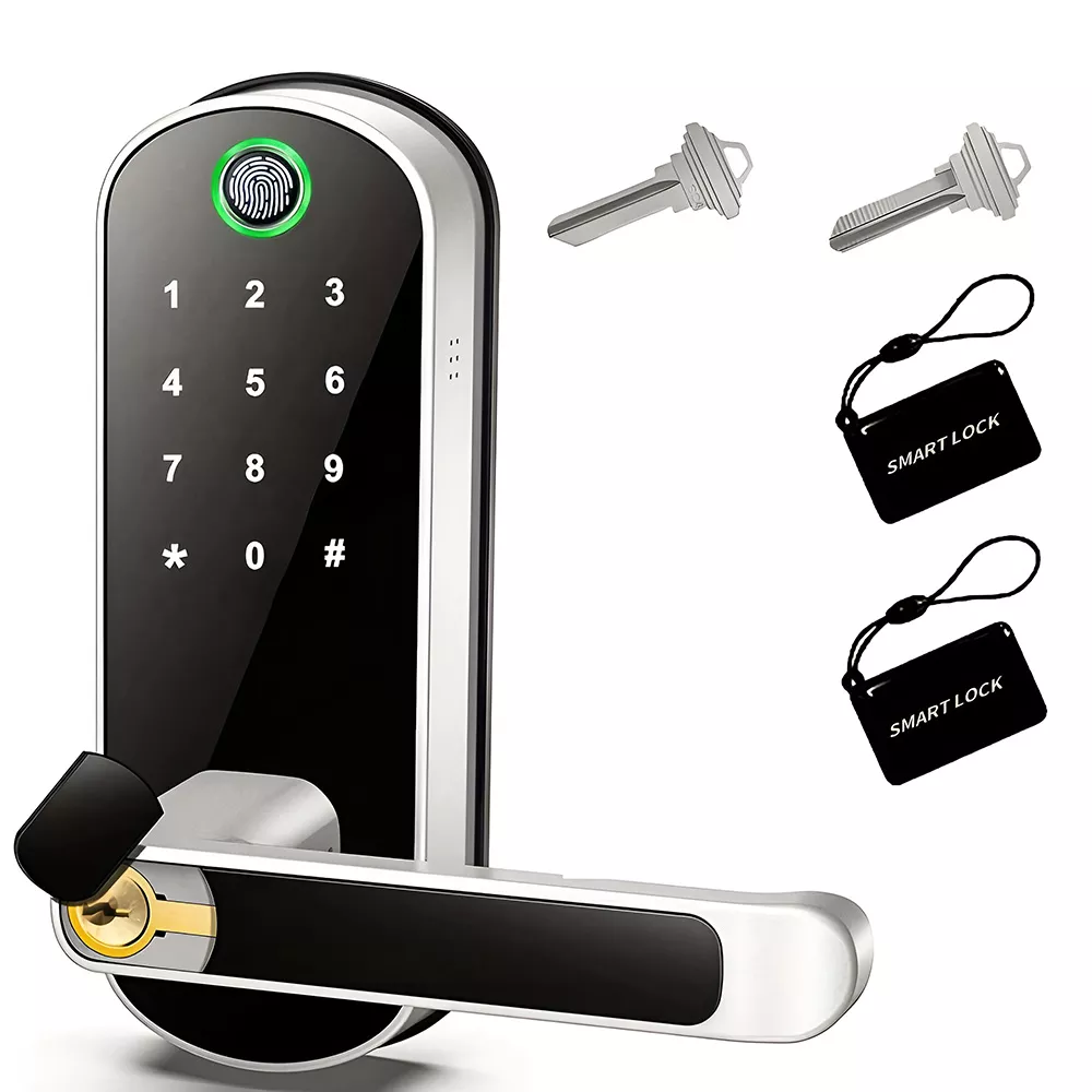 Upgrade your home or office security with the Smart WiFi Fingerprint Door Lock – a powerful blend of technology, durability, and style. Say goodbye to lost keys and hello to keyless convenience with this 5-in-1 digital door lock. Whether you’re securing your entry door, bedroom, or office, this smart lock offers fast, secure access through fingerprint, app, passcode, IC card, or traditional key. Designed for modern living, it’s perfect for homeowners, short-term rental hosts, and property managers who need smart, remote control of who comes and goes.