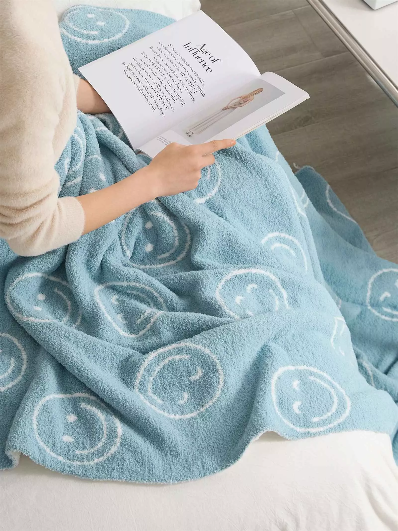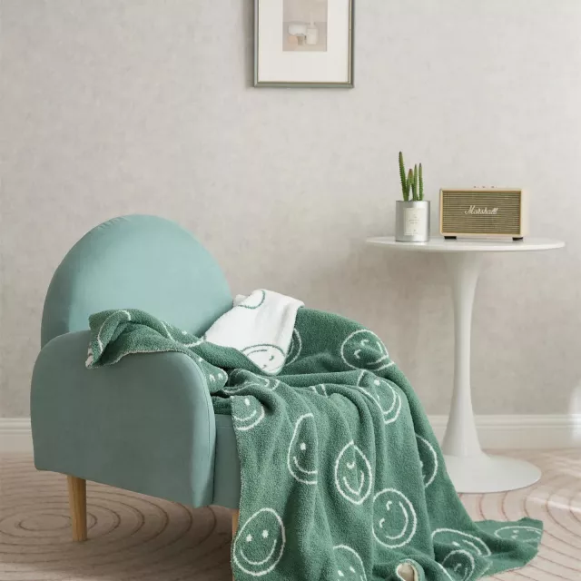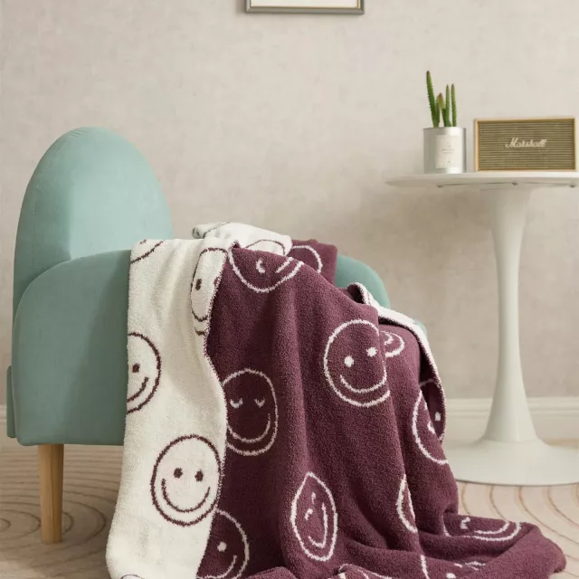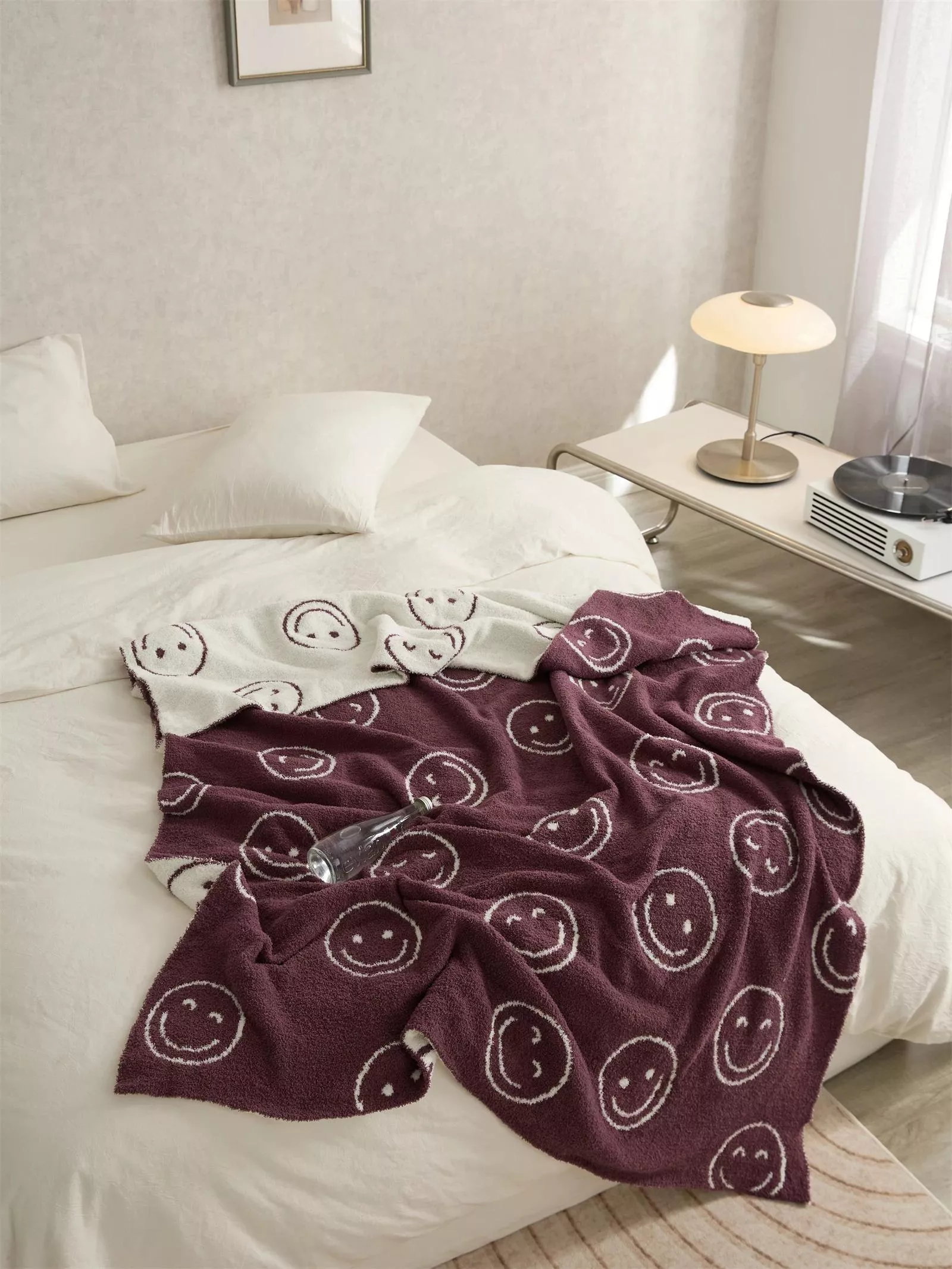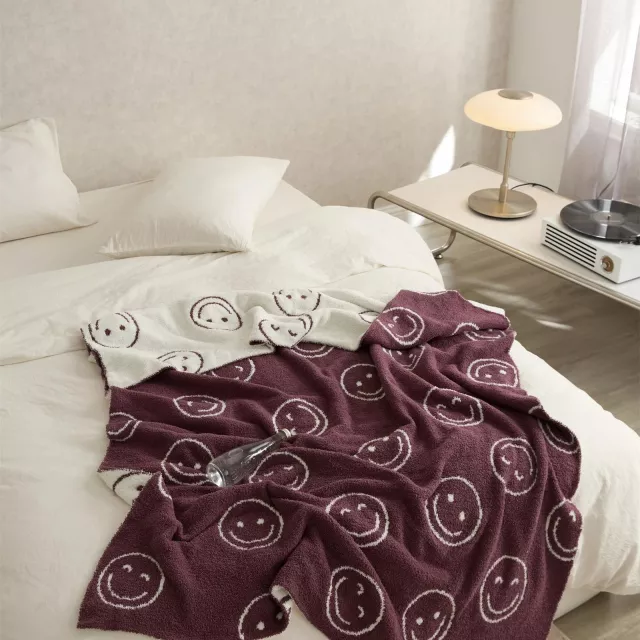 This blanket isn’t just soft—it’s a feel-good essential. The fun cartoon-style smiley face design creates a playful, relaxed vibe in any space. Lightweight and breathable, it’s great for spring and autumn, offering just the right warmth without overheating. The knitted texture adds a touch of elegance, while its softness invites endless snuggling on the couch, in bed, or even during a long workday at the office.