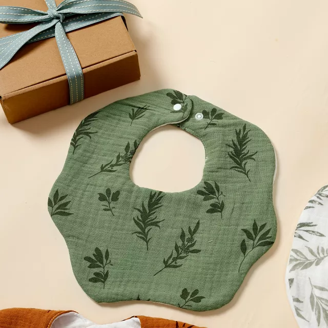 The versatile design means these bibs are more than just burp cloths – they can be used as stylish bandanas, giving your baby a trendy look. The petal shape and neutral colors make them a perfect fit for any outfit, and the charming plant pattern adds a delightful, nature-inspired touch. Plus, the set of five means you’ll always have a clean one ready when you need it most.