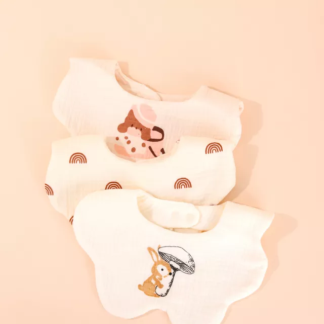 Unlike ordinary bibs, our cotton gauze bib combines comfort and durability with smart features like waterproof protection and a rice pocket. The stylish cartoon print adds a cheerful flair that babies and parents will love. Free from harmful chemicals, it’s a safe and thoughtful choice for everyday wear.