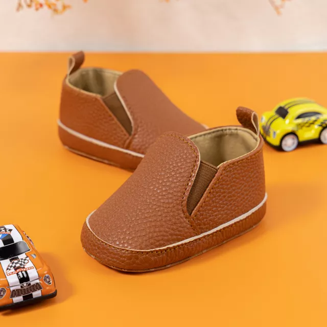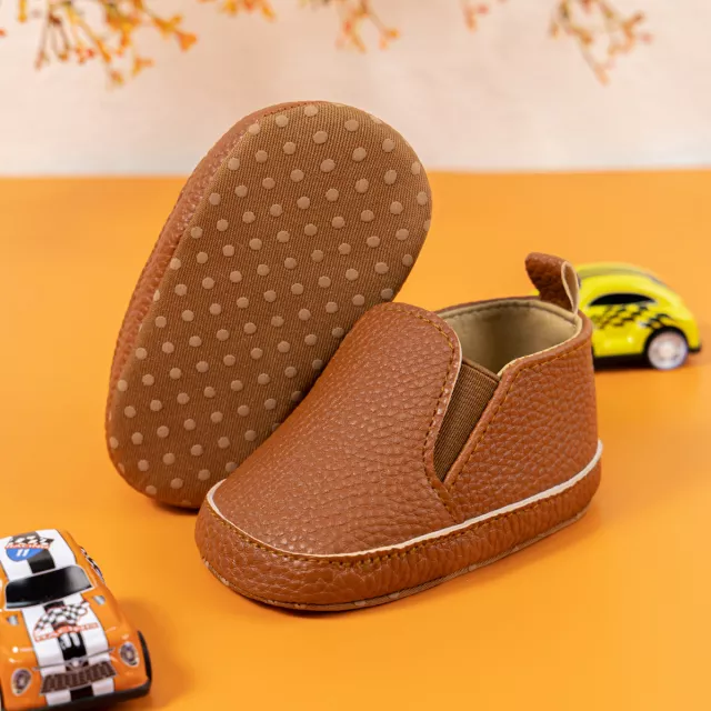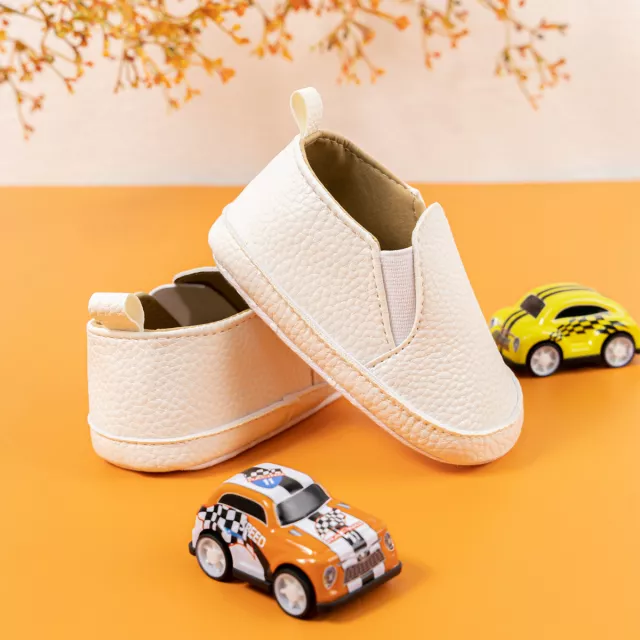 Crafted with soft, baby-friendly materials and an easy slip-on design, these first walkers are made to keep tiny feet secure without restricting movement. The cotton outsole provides a flexible grip for early walkers, while the smooth upper and solid color design add a classic, stylish touch to any outfit.