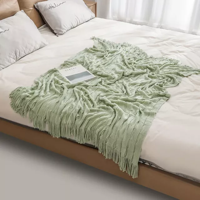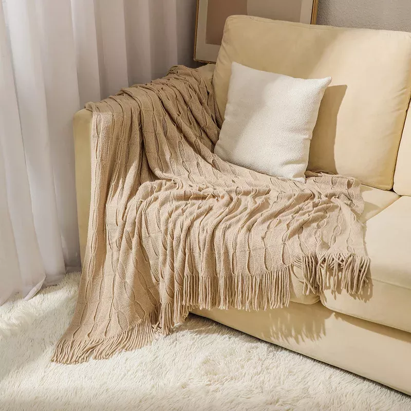 Unlike ordinary throws, this one combines high-end aesthetics with everyday functionality. The jacquard knit design adds visual depth and texture, while the solid color and classic tassels make it a seamless addition to any décor style — from minimalist to boho chic.