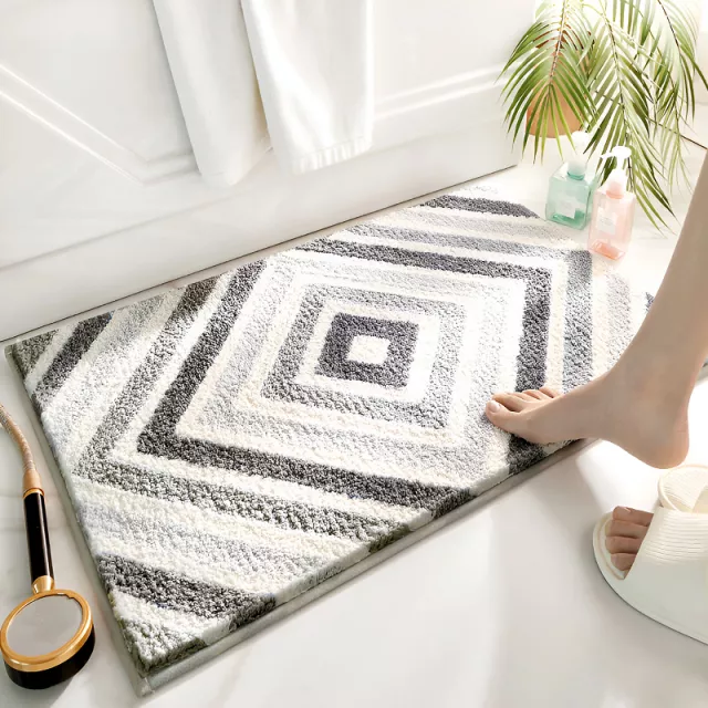 Step out of the bath or shower and onto a cloud. Our Soft Microfiber Geometric Bathroom Rug is designed to bring a touch of modern elegance and unmatched comfort to your home. Made with premium microfiber and crafted in a simple, chic geometric pattern, this bath mat turns any bathroom, bedroom, or entryway into a cozy haven. The soft, thick plush pampers your feet while giving your space a fresh, stylish look.