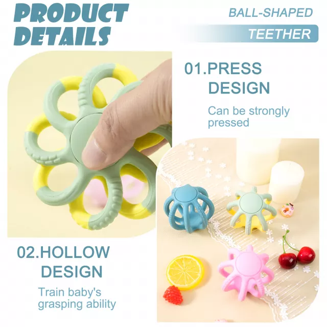 This teether stands out for its thoughtful design and premium safety. Made from 100% food-grade silicone, it is free from harmful chemicals such as BPA, PVC, phthalates, latex, and nitrosamines. It has a hollow, round shape that is easy to grip and gentle to chew. The soft yet durable texture massages sore gums while being strong enough to last through months of teething.