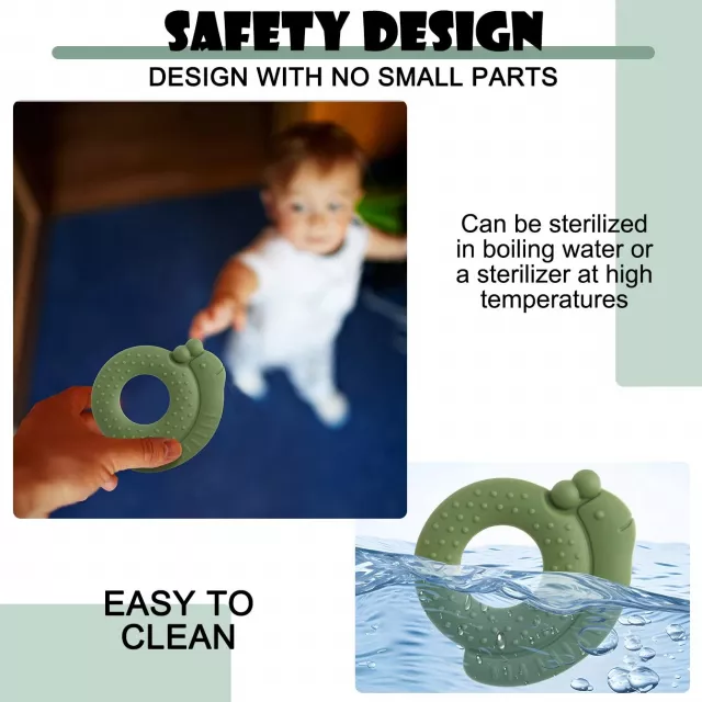 Made from 100% food-grade silicone, this baby teether is completely free from harmful chemicals such as BPA, latex, phthalates, nitrosamines, and PVC. Its soft, chewable texture is perfect for tender gums, and the compact size is easy for tiny fingers to grasp. The minimalist, pure color design adds a modern touch, making it a favorite for parents and a fun find for babies aged 0 to 6 years.