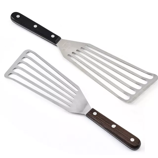 Level up your kitchen game with this premium stainless steel slotted turner and fish spatula — a must-have tool for home chefs and grilling enthusiasts alike. Designed for control, comfort, and flawless performance, this turner is your new secret weapon for tackling delicate fish, hearty burgers, golden pancakes, and everything in between. Whether you’re flipping salmon filets or lifting crispy bacon strips, this tool delivers effortless precision every time.