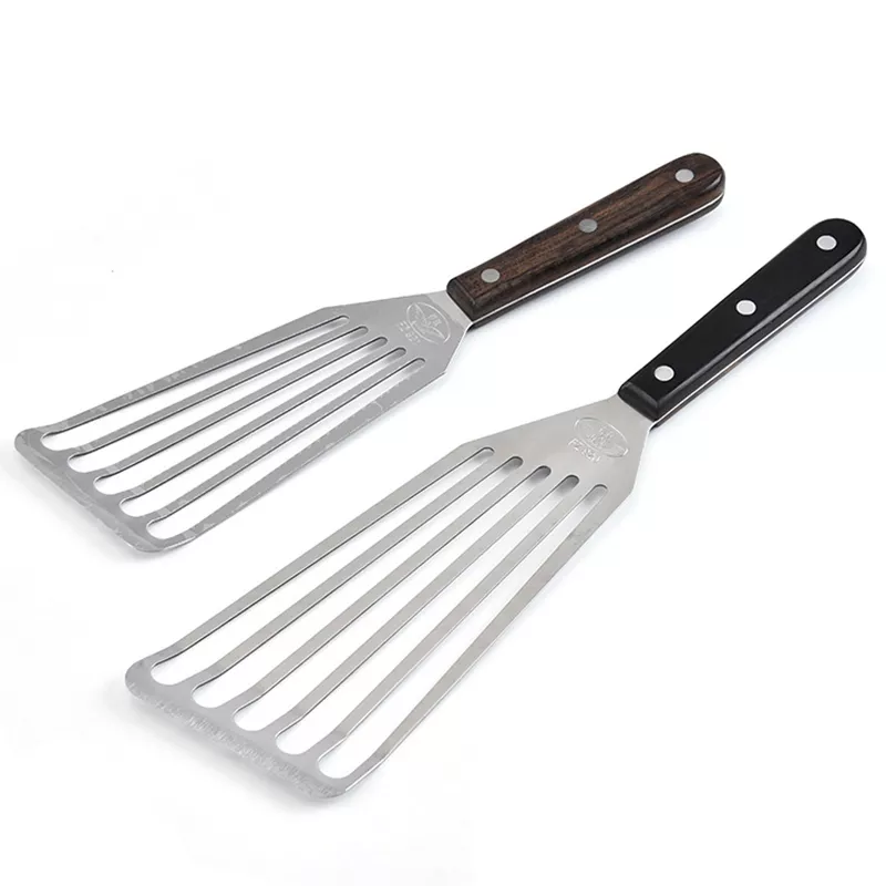 Built with a high-quality stainless steel head and an ergonomic wooden handle, this spatula combines durability with a natural, comfortable grip. Its thin, beveled edge slides easily under foods without tearing or sticking — perfect for delicate ingredients that demand a gentle touch. And thanks to the slotted design, excess oil and grease drain away quickly, leaving your meals crisp and delicious.